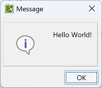 Application.getInstance().getGUILog().showMessage("Hello World!");